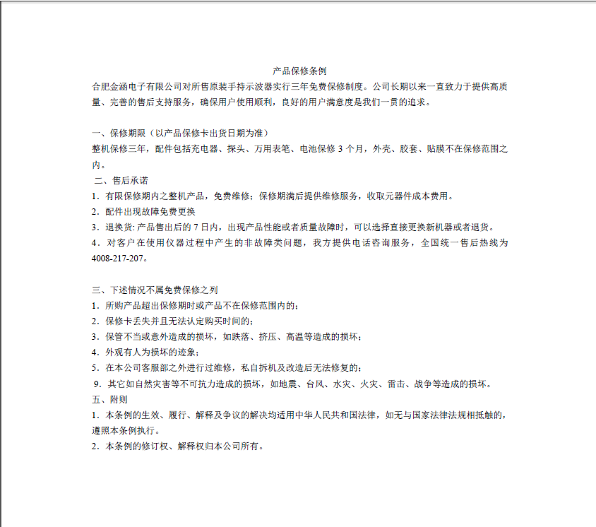 售后服務(wù)說明