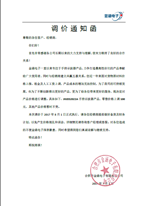 調(diào)價(jià)通知函